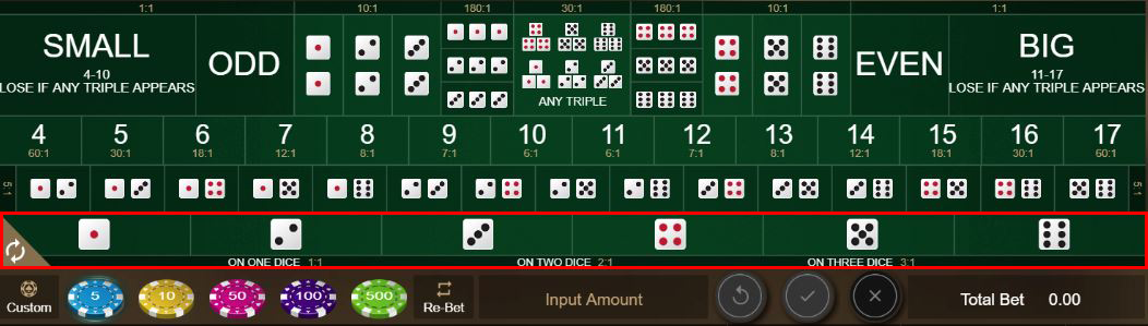 This last payout is very different from a winning Triple bet (see above, which pays 150 to 1. But these different betting options are what make Sic Bo so fascinating!
